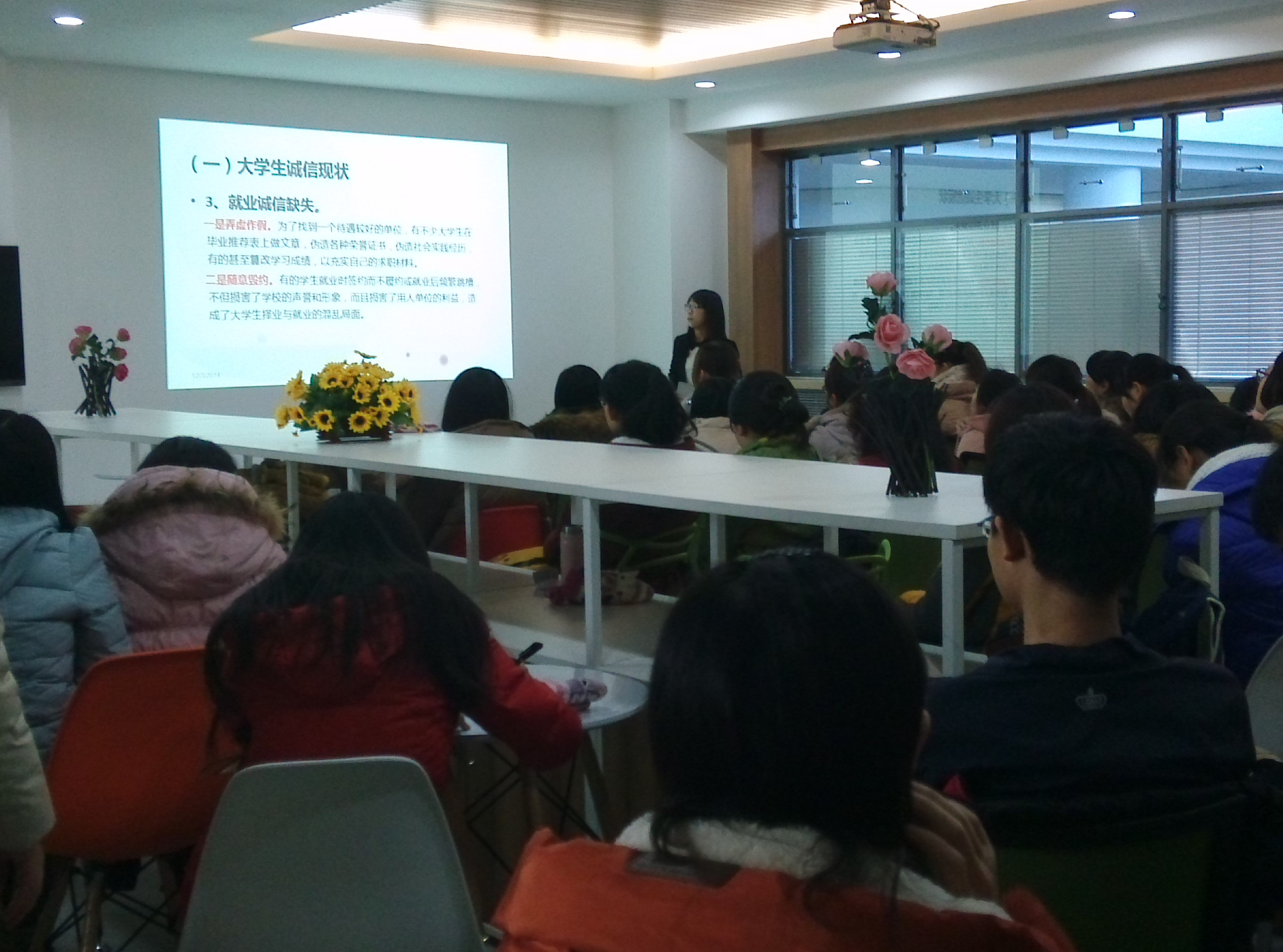 接下来,到场的研究生同学观看了以诚实守信为主题的微电影。每段影片过后同学们都进行了热烈地讨论,并就“诚信是什么”、“怎样做好诚实守信”、“如何做到就业诚信”等热点问题纷纷发表自己的看法。期间,与会同学还对大家较为关注的“学术造假”现象做了细致深入地探讨,就如何避免学术造假建言献策,将主题活动推向高潮。
