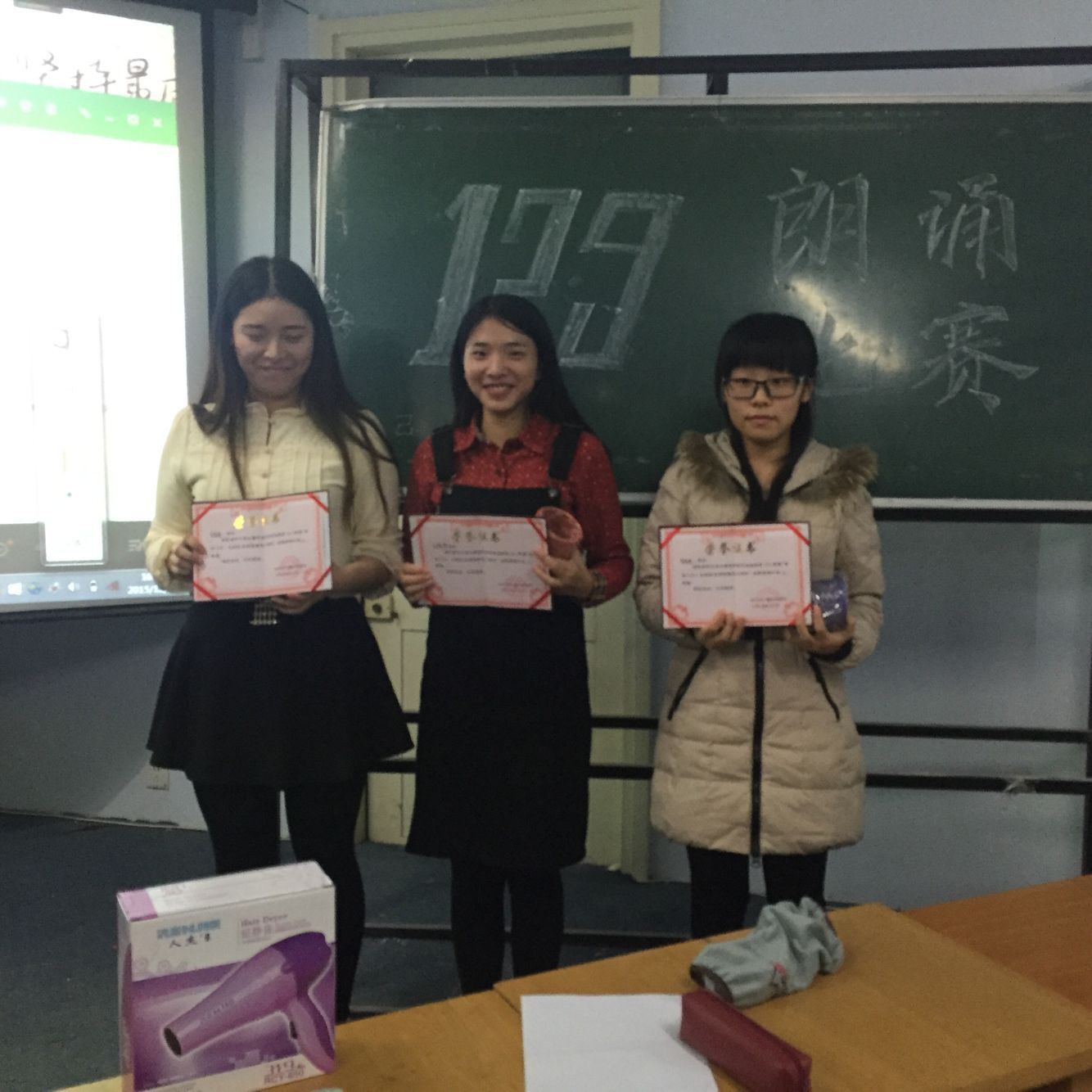 研究生团委于12月11日下午4时 , 在外语楼508教室举行了以“纪念一二·九运动,弘扬爱国主义精神”为主题的朗诵比赛。本次比赛的评委由院研会主席周原、研究生党支部副书记吴超群 、研究生团委宣传部长王佳敏担任,参加本次比赛的还有各年级专业研究生同学。
