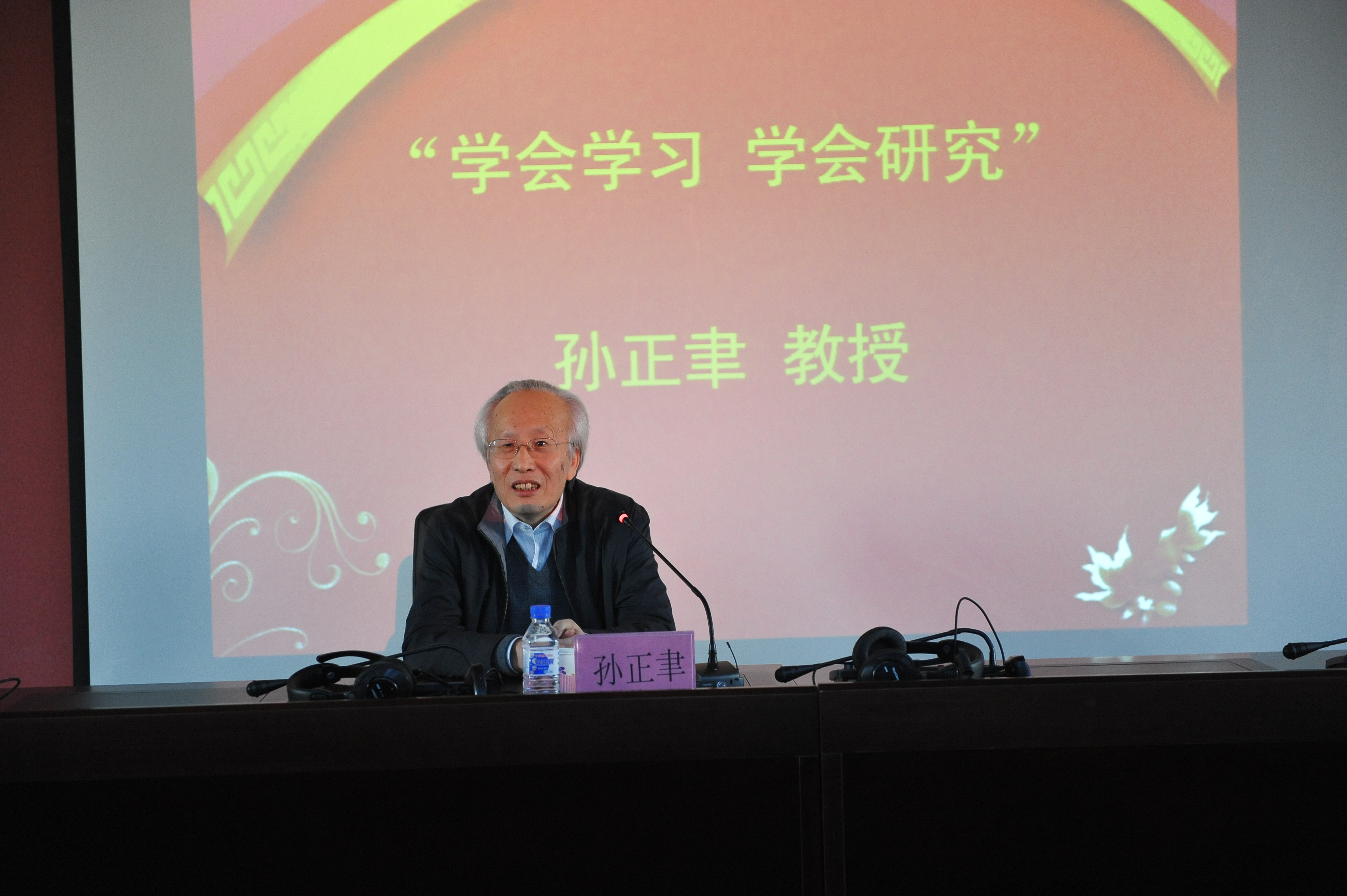 孙教授的讲座主要围绕三个“真”,即:真诚、真实、真切,和三个“积累”,即:文献积累、思想积累、生活积累,展开了如何学会学习和研究的讲解。孙教授讲到,在学习和研究中,应该用真诚的态度进行真实的研究并真切地思考,学习要学的有意思,而不是为了学习的意义而学,“意义”是对他者、对社会而言,“意思”是对自己而言的,是存在于学习过程中的,自己学的有意思自然就有意义,心无旁骛地学习,认真思考,把知识内化为自己的东西便是真切的掌握了。而对于三个积累,孙教授强调:一定要阅读经典、拓宽视野,然后专攻一点进行深入研究,读书的时候要有强烈的问题意识,这些都是文科研究者必须要走的路。作为当今信息科技时代的大学生,孙教授提醒师生们不要依赖网络的“搜索”功能,要结合历史和社会的大背景和自己的生活经历进行思考,才能有真正的研究成果,文献积累、思想积累、生活积累要结合起来,它们相辅相成为我们所用。讲座之后,孙教授还耐心回答了现场同学提出的问题。在整个讲座和回答提问过程中,孙教授旁征博引、语言生动,每个例证都论证出深刻的哲理,每句总结都折射出人生的内涵和理性的光辉,每个问题的解答都使同学们茅塞顿开,同学们时时掌声雷鸣,获益匪浅。