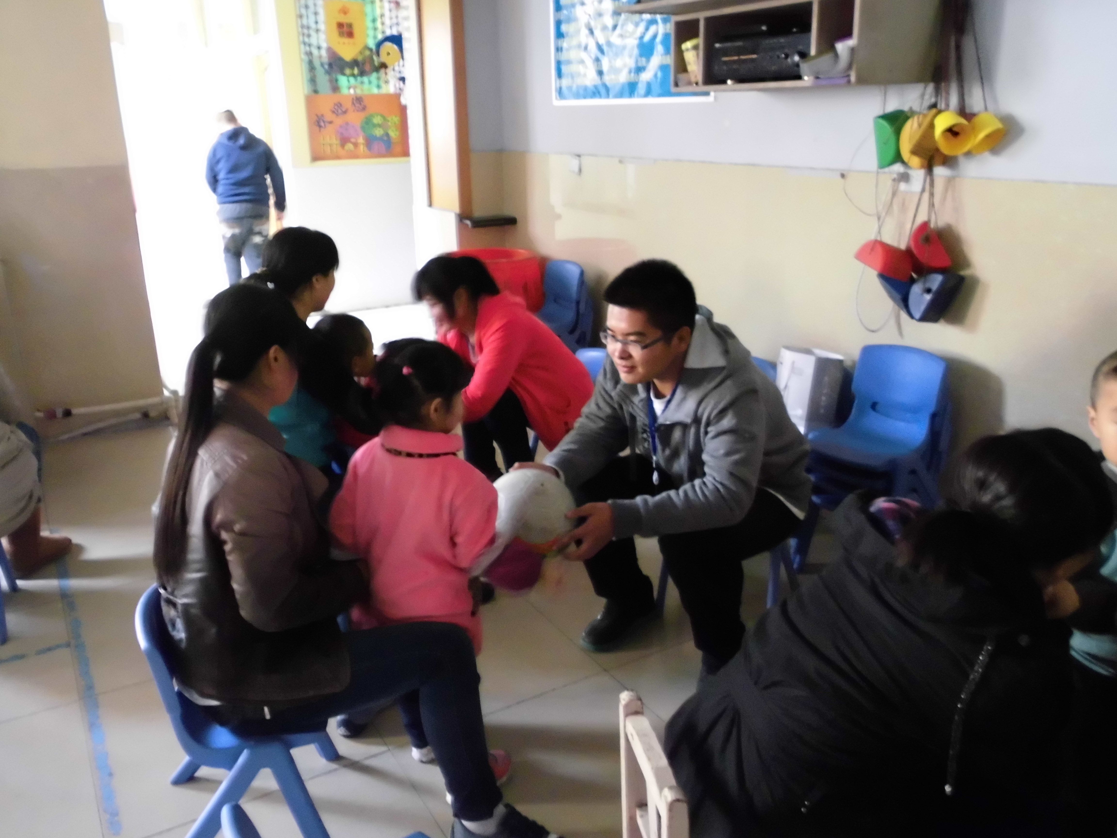 U&I志愿者协会的志愿者们来到位于长春西北部的长春星光特殊儿童教育中心,陪自闭症儿童一起上课。刚刚来到这里时,孩子们在上拍球课,志愿者们热情地与孩子们玩儿了起来。孩子们开始时有些不愿与志愿者们接近,但热情的志愿者们给孩子们带来了糖果,并用爱心和微笑最终吸引了孩子们的注意力。孩子们和志愿者一起拍球、传球。在休息时间,志愿者领着孩子们走路、做游戏,问一些简单的问题,诸如名字、年龄、爱好。虽然志愿者和孩子们在语言沟通上有些障碍,但孩子们都很聪明,只要耐心听他们的讲话,多与他们交流,沟通就不是问题。接下来,志愿者陪孩子们一起画画、写字、识字,孩子们都很喜欢志愿者。