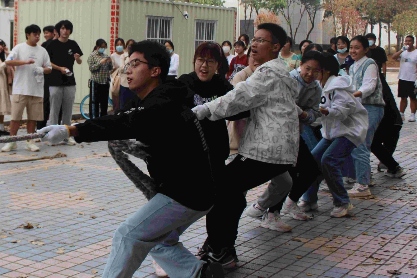 于外语楼前举办“外语杯”秋季新生拔河比赛,2022级各班共组建11支队伍参赛。