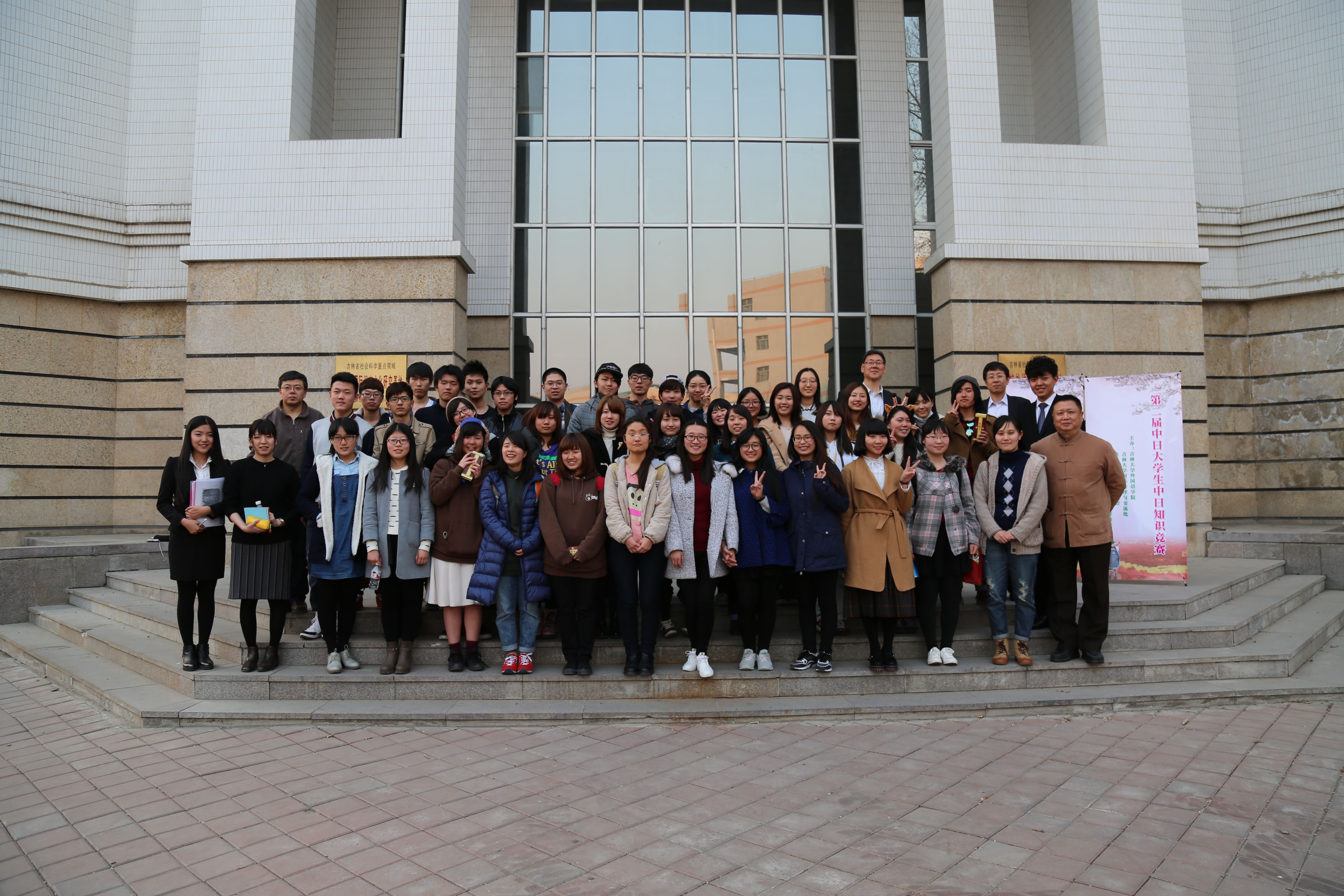 日文系学生代表和日本大学生在外语楼500多功能厅举办了“第二届中日大学生中日知识竞赛”,双方各派出20名学生参赛,比赛命题由双方共同制作,内容涵盖中日两国语言、文化、历史、地理等诸多内容,赛场气氛热烈,两国大学生表现出色,大赛取得了圆满成功。3月20晚,两国大学生共同参加了由acg漫画