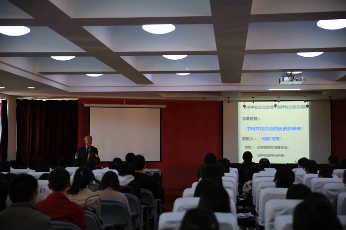 揭牌仪式结束后,阿南惟茂所长为我校师生做了题为“中日文化交流的历史和未来”的纪念讲演。我校国际合作与交流处、acg漫画