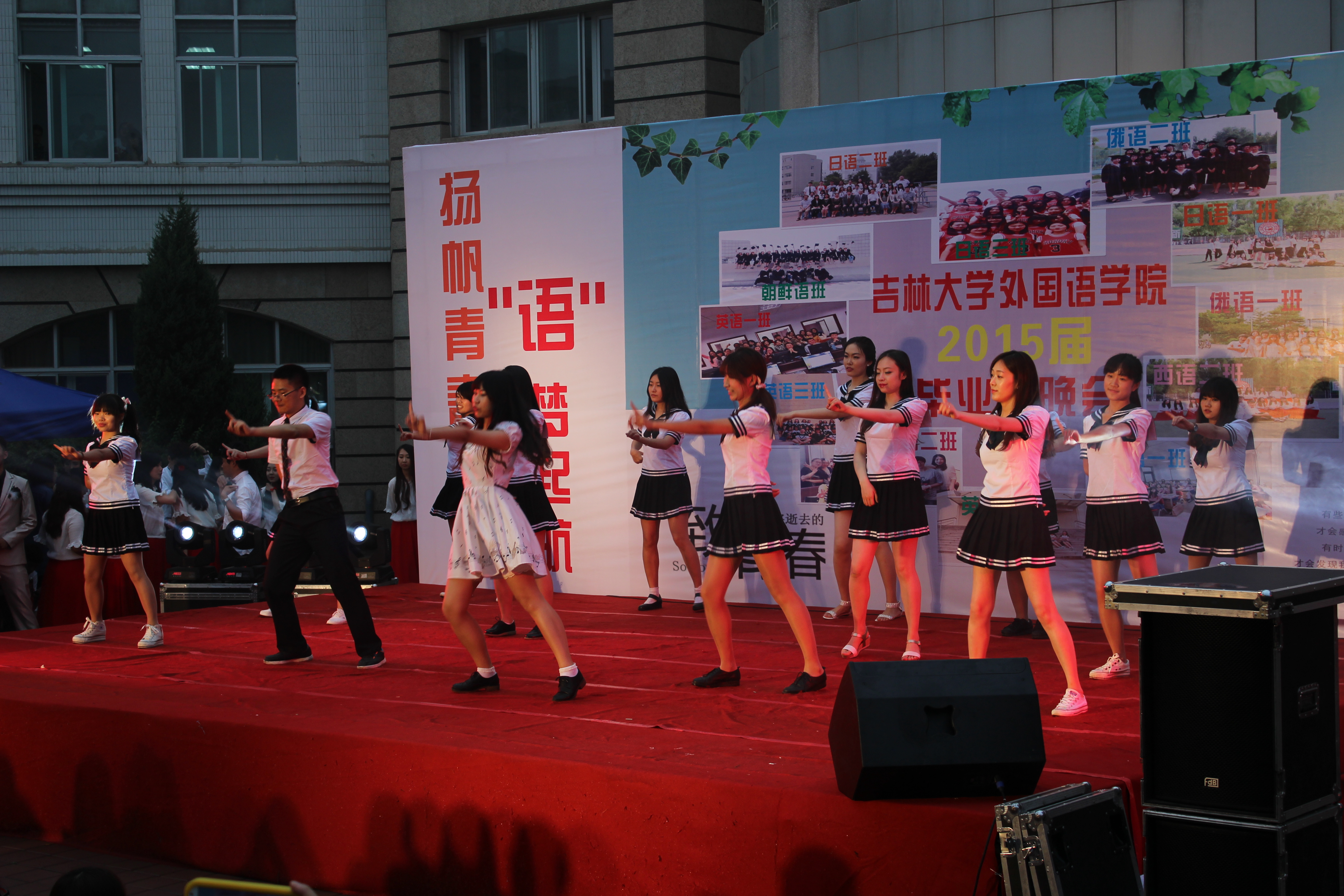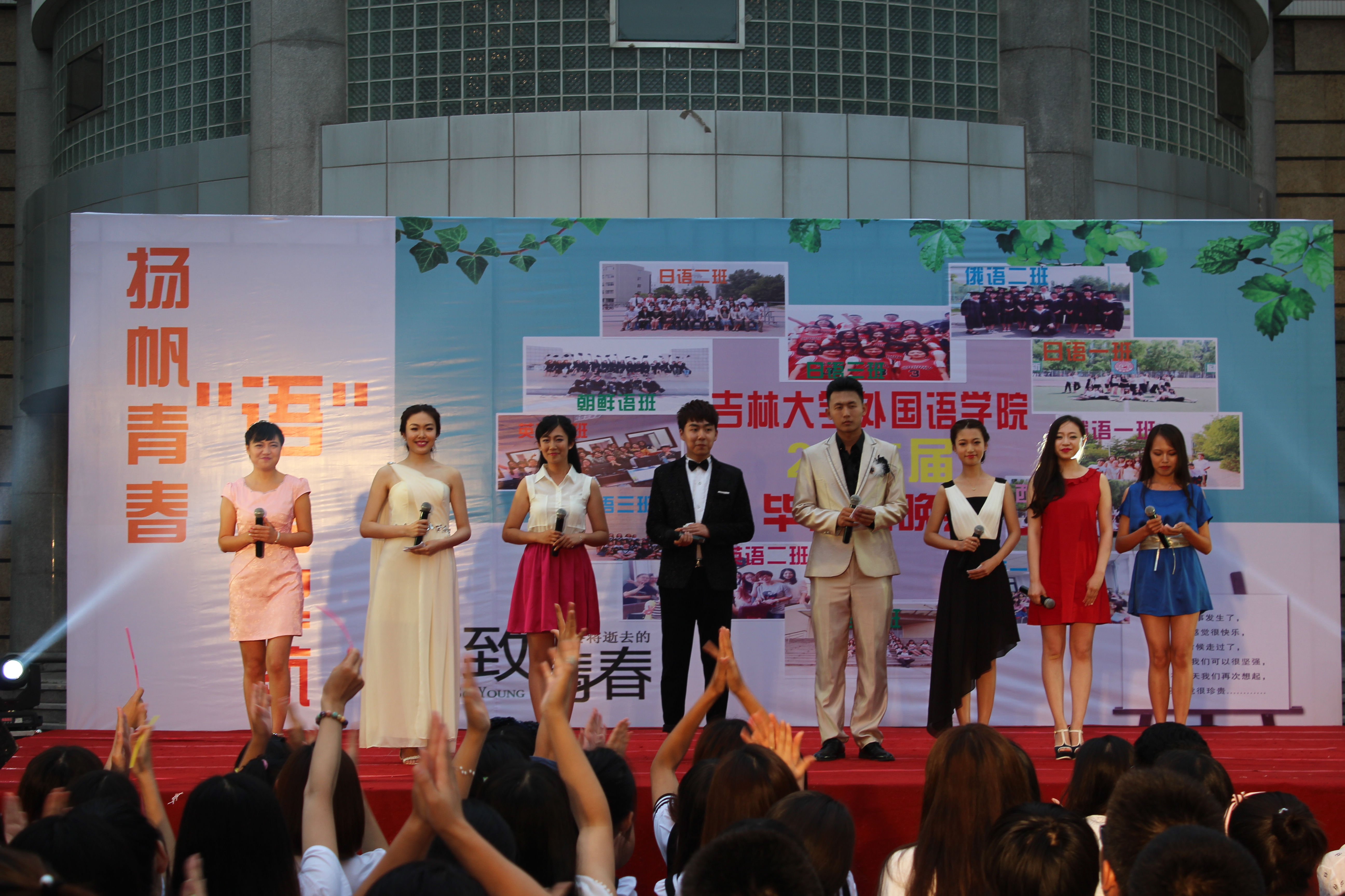 “扬帆青春,语梦起航”2015届毕业生晚会在外语楼正门浓情上演。acg漫画