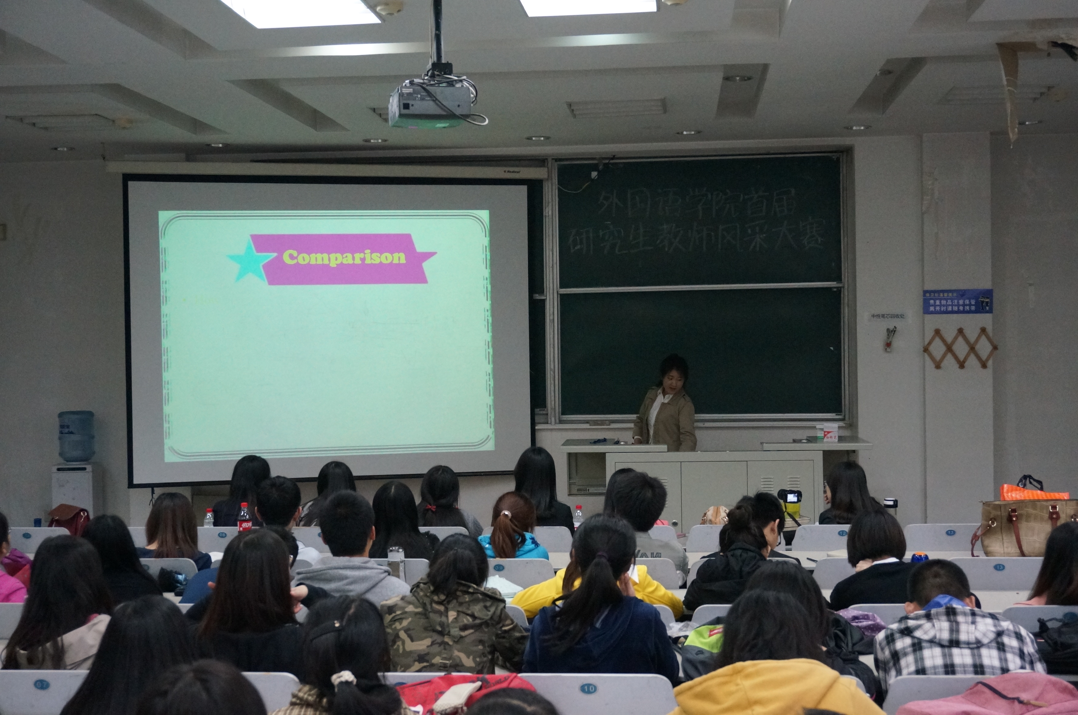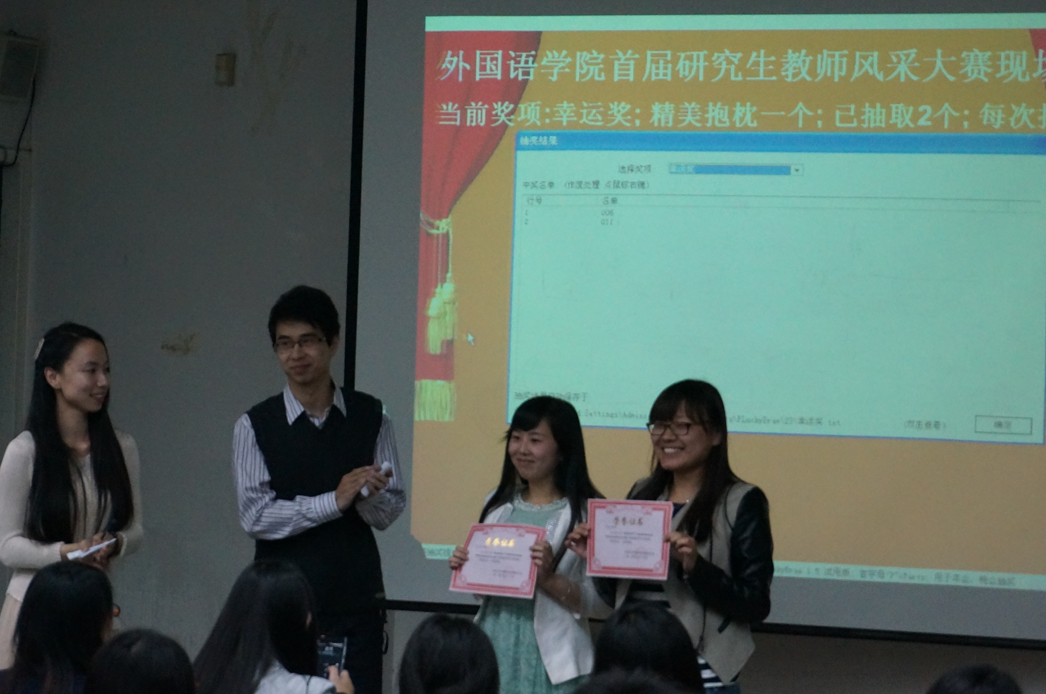为了增强研究生的综合素质,提高研究生的实践能力,acg漫画 于5月15日18:00在逸夫教学楼第六阶梯教室举办了“慎思笃行”acg漫画 首届研究生教师风采大赛。学院2013级研究生与本科生代表参加了比赛。 本次大赛分为初赛和决赛两个环节。经过初赛的选拔,八名同学进入到决赛现场。本次决赛中,每名选手有十分钟的现场授课时间,最后由评委根据每名选手的现场表现进行评分和点评, 并且由20名本科学生选出最受学生欢迎的两名教师。决赛中选手们精彩而睿智的现场表现获得了评委老师和现场观众的一致好评。最终,经过评委打分和学生现场投票,2013级西班牙语语言文学专业苑雨舒获得一等奖,2013级英语语言文学专业徐杨、亚非语言文学专业范慧杰获得二等奖,英语语言文学专业李英菀、日语语言文学专业唐家林、俄语语言文学周磊获得三等奖。 外语专业研究生很大部分有未来从事教师行业的意愿,本次活动为学生提供了一个展示自我风采的平台,提升了学生综合素质和实践能力。同时,通过评委们的点评指导和现场观众的意见反馈,同学们了解了自己的实力和弱点,为下一阶段的学习提供了方向。