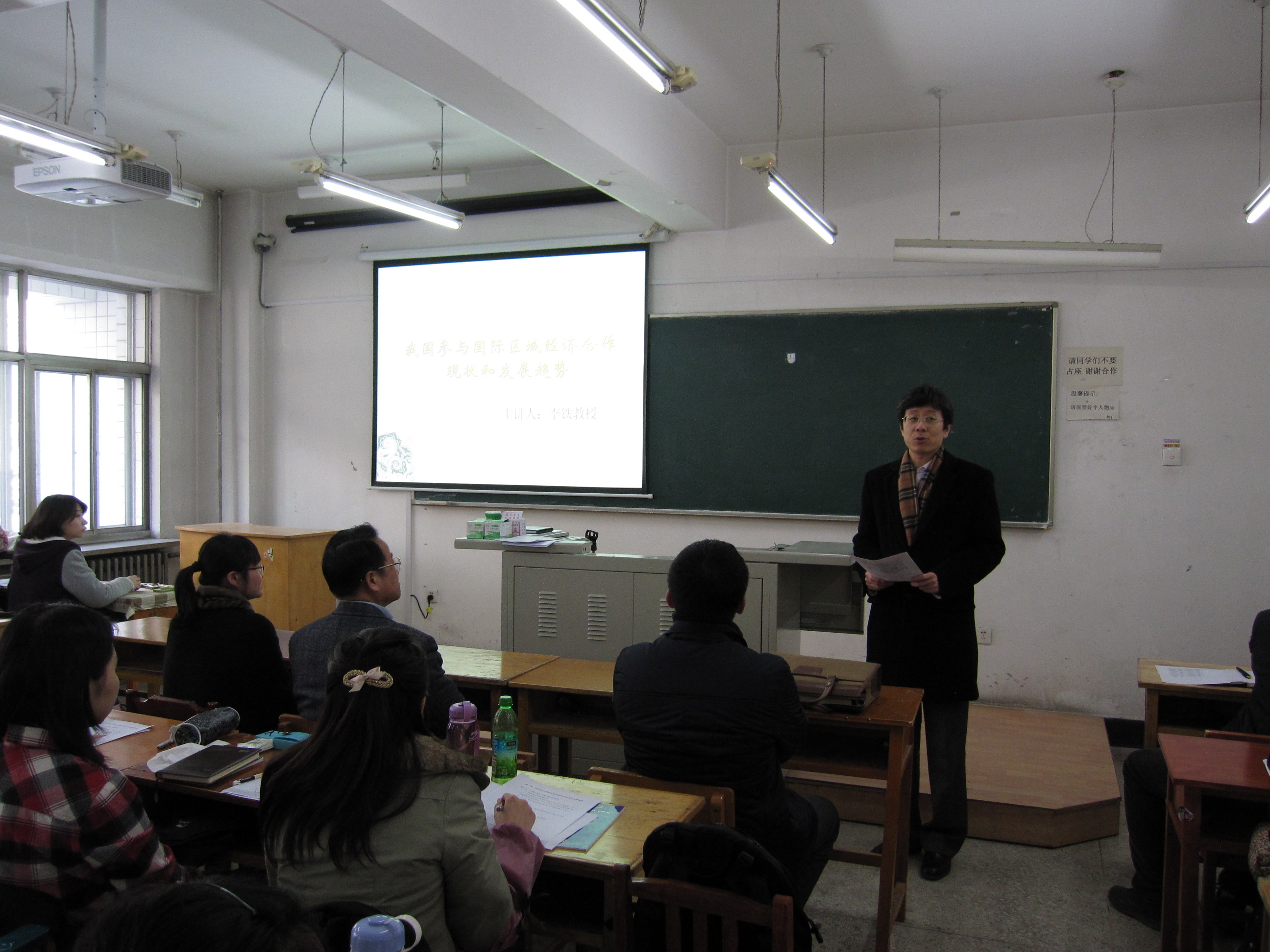 探索硕士研究生培养机制改革的重要举措之一,目的在于拓宽外语专业研究生的知识面,提升其综合知识水平。该课程有利于学生了解国际区域经济合作的现状及发展趋势,理论联系实际,更好地将研究生培养与地方经济发展的社会需求结合起来。周院长希望同学们珍惜听课机会,努力学习,开拓视野,提高创新能力和实践能力,成为综合素质全面的高层次人才。
