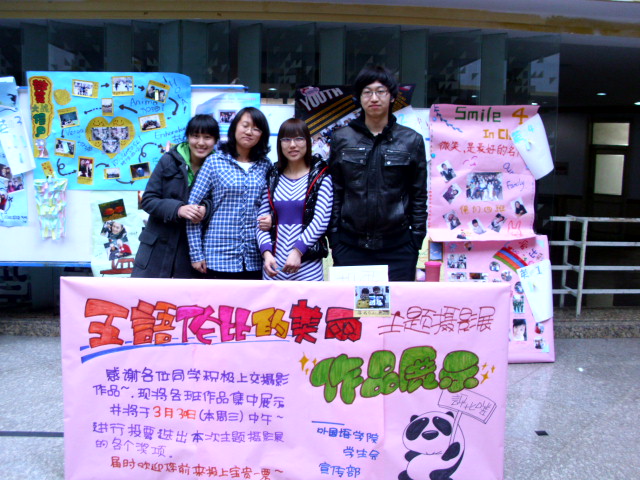 历时一周的作品征集中,学院收到了来自2010级10个班级的海报作品和数十份个人作品。精心拍摄的数码照片和独具匠心的海报设计带来了美的享受,记忆了同学们大学生活第一年的美好瞬间:冬日里的外语楼、扫雪时的齐心协力、生日party上的欢乐恶搞、与外教们的愉快交流、刻苦钻研时的一丝不苟,西班牙语两班的作品彰显了同学们活力四射的青春,记载了同学们的快乐生活,呈现了学院无与伦比的美丽。