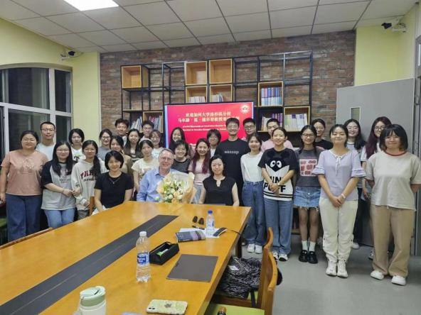 进行学术交流。来访期间,马尔滕·范·德尔登教授为西文系本科生、硕博研究生讲授专题课程四场,为英文系、西文系师生做主题讲座两次,与学院领导、教师进行了亲切的座谈交流。