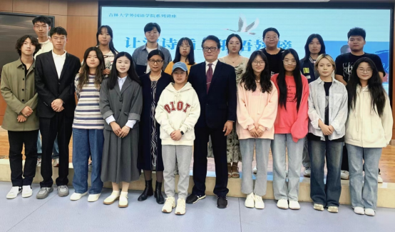 讲座伊始,毛秀璞老师首先向同学们阐述了为何要让汉诗插上俄语翅膀。毛老师指出,中俄两国都有着璀璨夺目的诗歌文化,中国古有李白、杜甫等诗坛巨匠,而俄国则有普希金、莱蒙托夫等文学巨擘。两国的诗歌文化既有各自独特的魅力,又有着许多相似之处。同时,毛老师也提到当代俄诗翻译存在断代现象,导致许多优秀的俄诗作品无法被中国读者所熟知,反之中国优秀诗歌作品也因为翻译的人少而无法让喜爱诗歌的俄罗斯人了解。因此,让汉诗插上俄语翅膀,不仅有助于我们更好地了解俄国的诗歌文化,也能促进中俄两国当代诗歌的交流与合作。在讲座中,毛老师还分享了自己的写作经历和个人的生活体验。他提到,诗人虽然在生活中可能会遭遇不幸,但这些经历往往能激发他们创作出更加感人至深的诗篇。这也正是“诗人不幸诗之幸”的深刻含义。毛老师的话语深深打动了在场的同学们,他们纷纷表示要珍惜自己的生活经历,用诗歌来表达自己的情感和思考。
