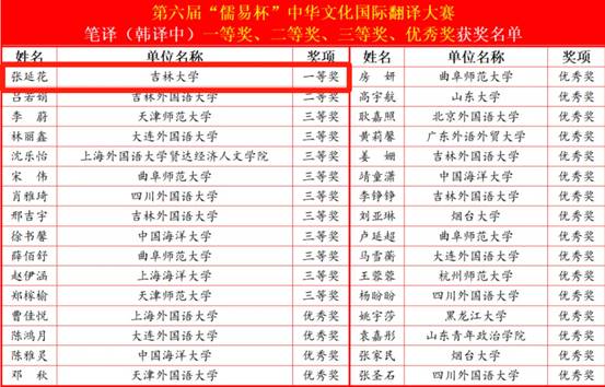23级朝鲜语口译专业硕士研究生张延花同学表现卓越,荣获一等奖。