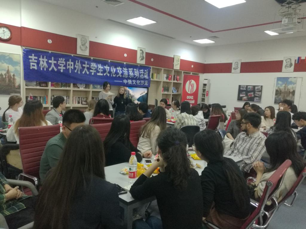 On the afternoon of November 13, 2019, a Sino-Russian cultural salon was held in the Russian Center of Jilin University. This activity was co-sponsored by the School of Foreign Languages and the School of International Education of Jilin University. It is part of a series of activities of cultural exchanges between Chinese and foreign students in Jilin University. The students attending the salon included students from the Russian Department of the School of Foreign Languages of Jilin University and international students from Russia, Kazakhstan and Tajikistan. The purpose of this activity is to enhance the exchange between Chinese students and Russian-speaking students, cultivate students’ international vision, stimulate the learning enthusiasm of Chinese and foreign students, improve students’ cultural knowledge of the target-language countries, and lay a solid foundation for cross-cultural exchanges.