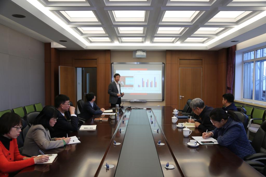 On the morning of November 5th, Deputy Secretary of the University Party Committee Feng Zhengyu went to the School of Foreign Languages (SFL) to carry out a symposium on education research with the theme “Remain true to our original aspiration and keep our mission firmly in mind.” He listened to the report on the progress of the school's theme education and investigated the relevant work of the school. Other leaders from the Party Committee Office accompanied him during his visit. All members of the leading group of the School of Foreign Languages attended the symposium.